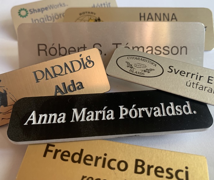 Snyrtileg barmmerki fyrir starfsfólk og þjónustu.