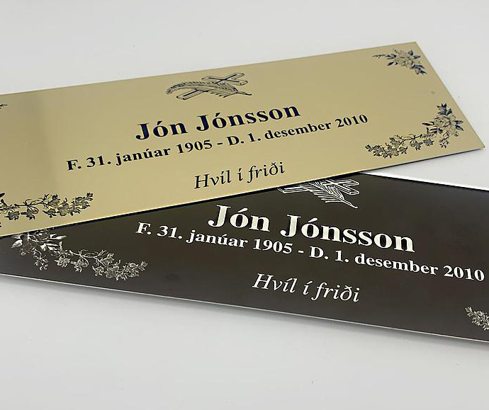 Við bjóðum upp á breitt úrval skilta, þar á meðal hurðaskilti, póstkassaskilti, leiðisskilti, viðvörunarskilti og aðrar merkingar sem stuðla að betra skipulagi, auknu öryggi og skýrari upplýsingagjöf.